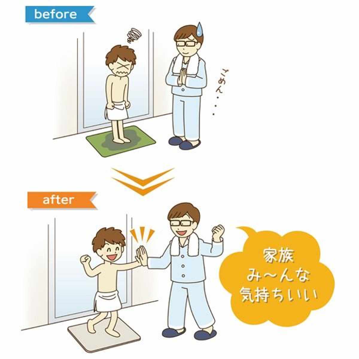 「お風呂上がりに使うバスマットは、いつもサラっと乾いた状態がいい」そんな理想を叶える、速乾性に優れたバスマットです。ぬれた足から吸収した水分を、あっという間に放出・乾燥するので、次の人がお風呂から出てくる頃にはサラサラな状態になります。従来の珪藻土バスマットよりも吸収力がUPして嫌なにおいもしにくいので、いつでも快適にお使いいただけます。