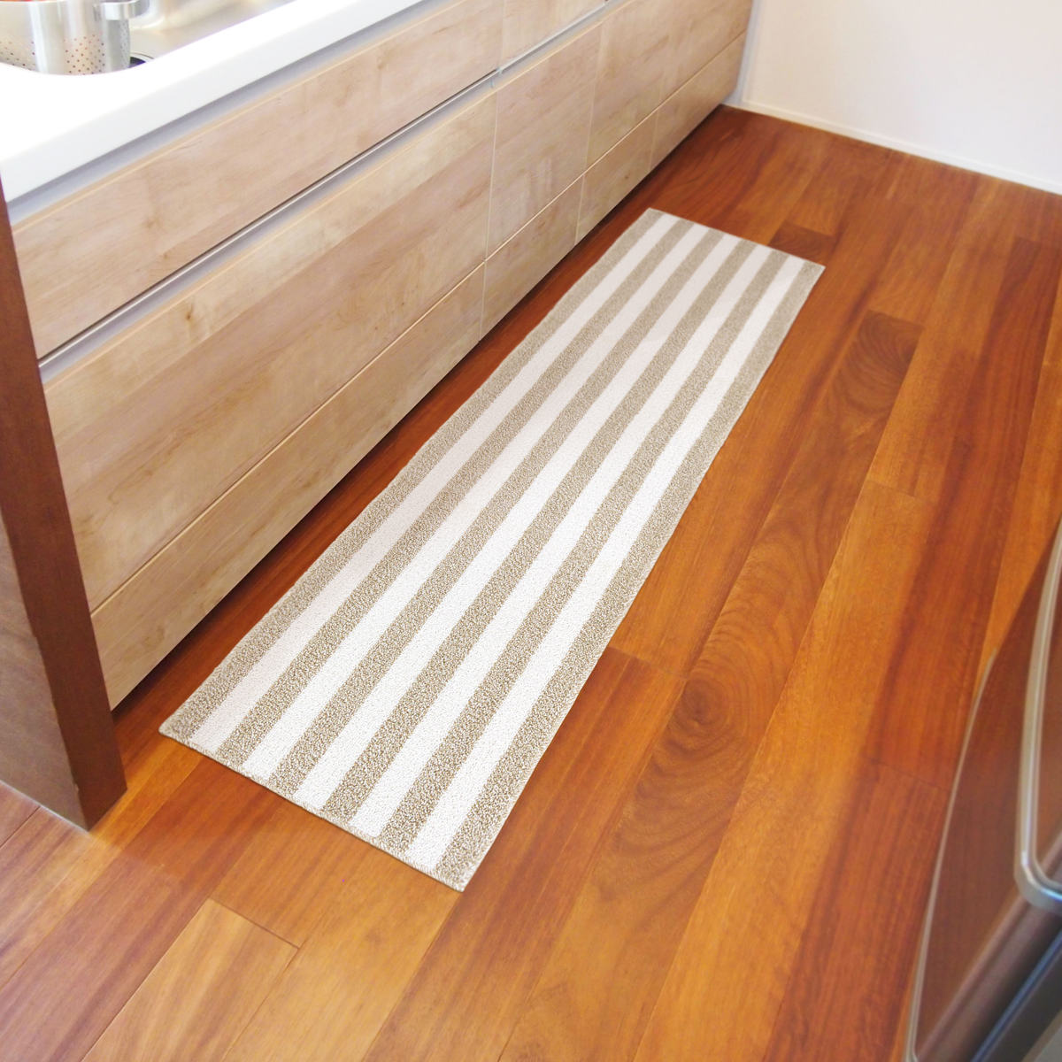 キッチンにも馴染むベーシックな色とデザインの45×180cmキッチンマットです。シンプルがいいけど、無地じゃ味気ないと感じる方にぴったりです。落ち着きのある色とデザインは、キッチンはもちろん、玄関や寝室などにもマッチします。