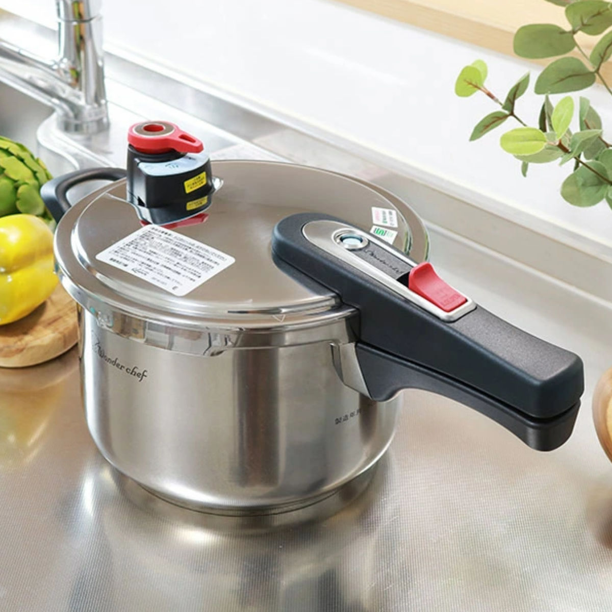 圧力鍋 4L IH対応 20cm 圧力切替 エリユム 片手圧力鍋 ワンダーシェフ wonderchef ( ガス火対応 片手鍋 圧力なべ 4リットル 圧力切替式 5合炊き 炊飯 ステンレス レシピ本付き eliyum )