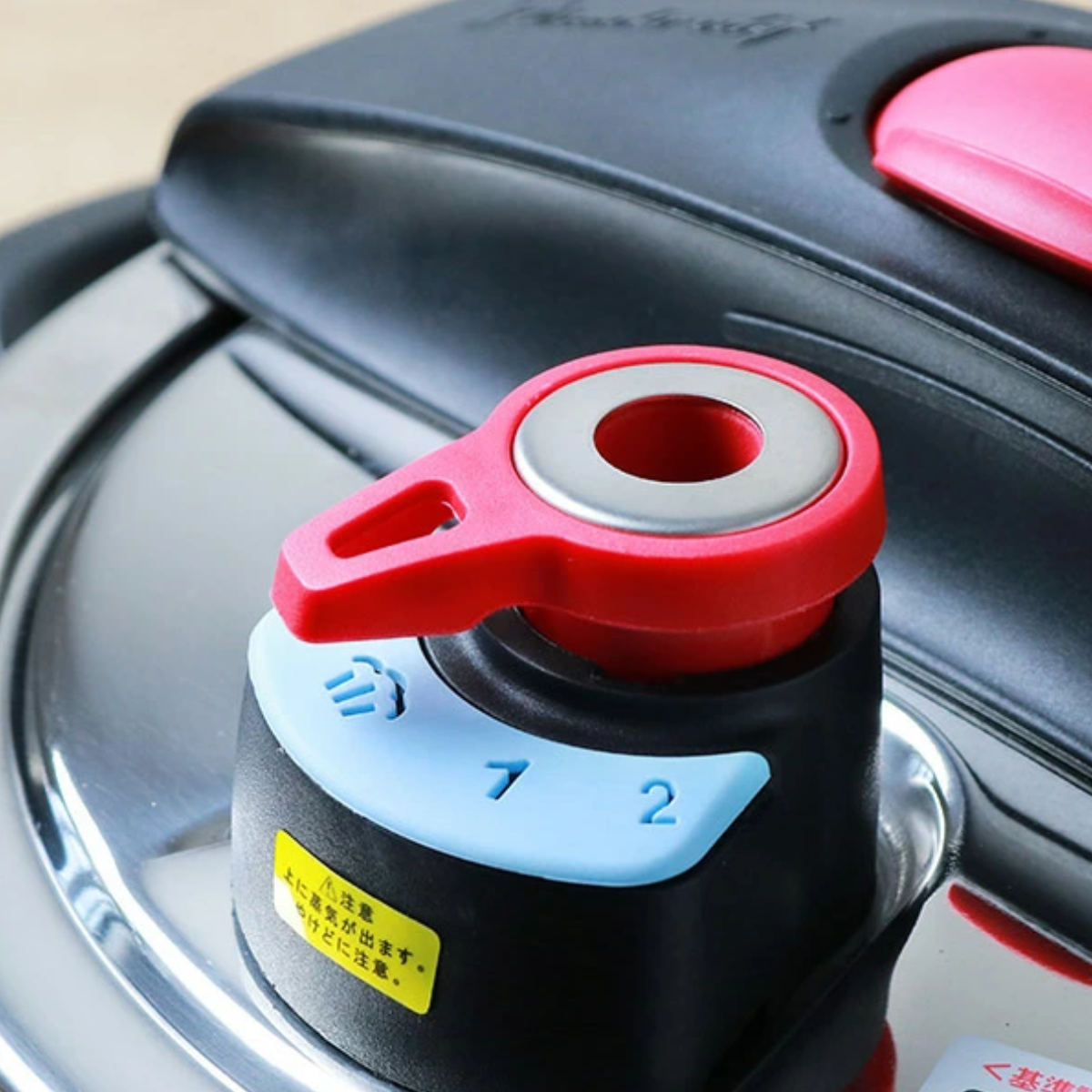 高圧(80kpa)と低圧(40kpa)の2段階に切り替えが可能なので、食材やメニューに合わせて設定ができます。調圧スイッチを回すだけの簡単操作で使いやすいので、圧力鍋のご使用が初めてでも安心です。沸騰のお知らせは蒸気排出式です。