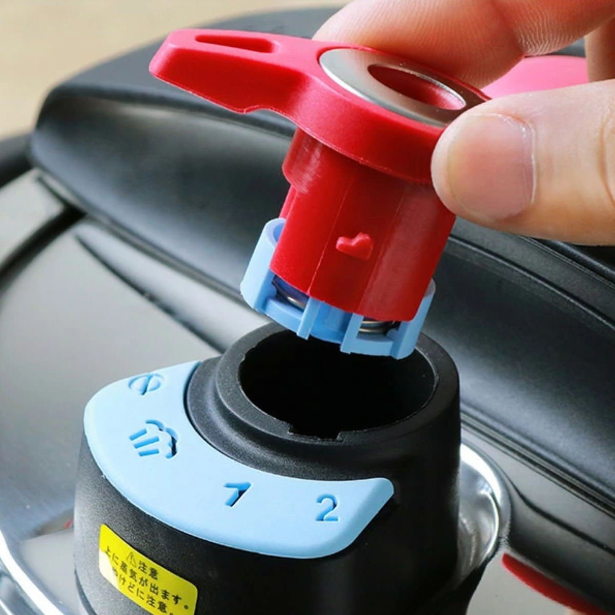 4.時間がきたら火を止め、しばらくしてフロートが下がったのを確認したら、おもりを外してゆっくりと蓋を開けます。
