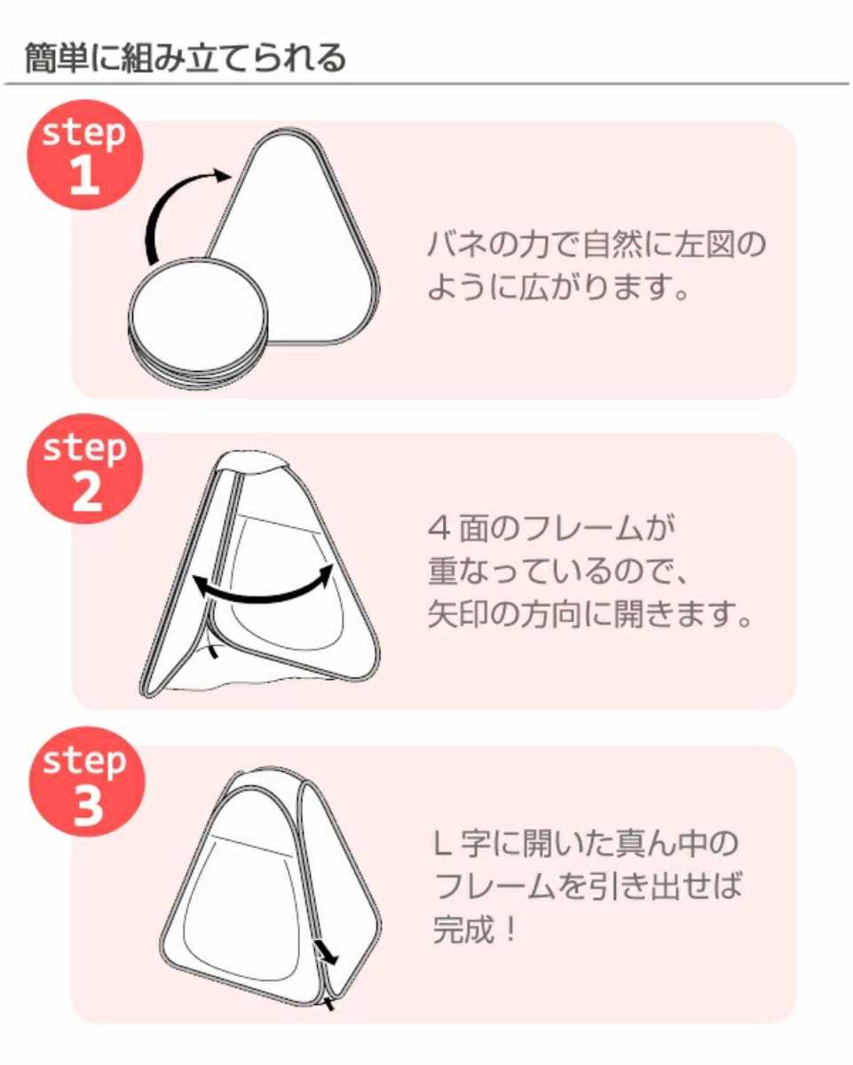 コンパクトに折りたたまれたテントを広げるだけで、簡単に設置できます。女性一人でも扱いやすく、お子さまが遊びたいときにすぐ使えます。