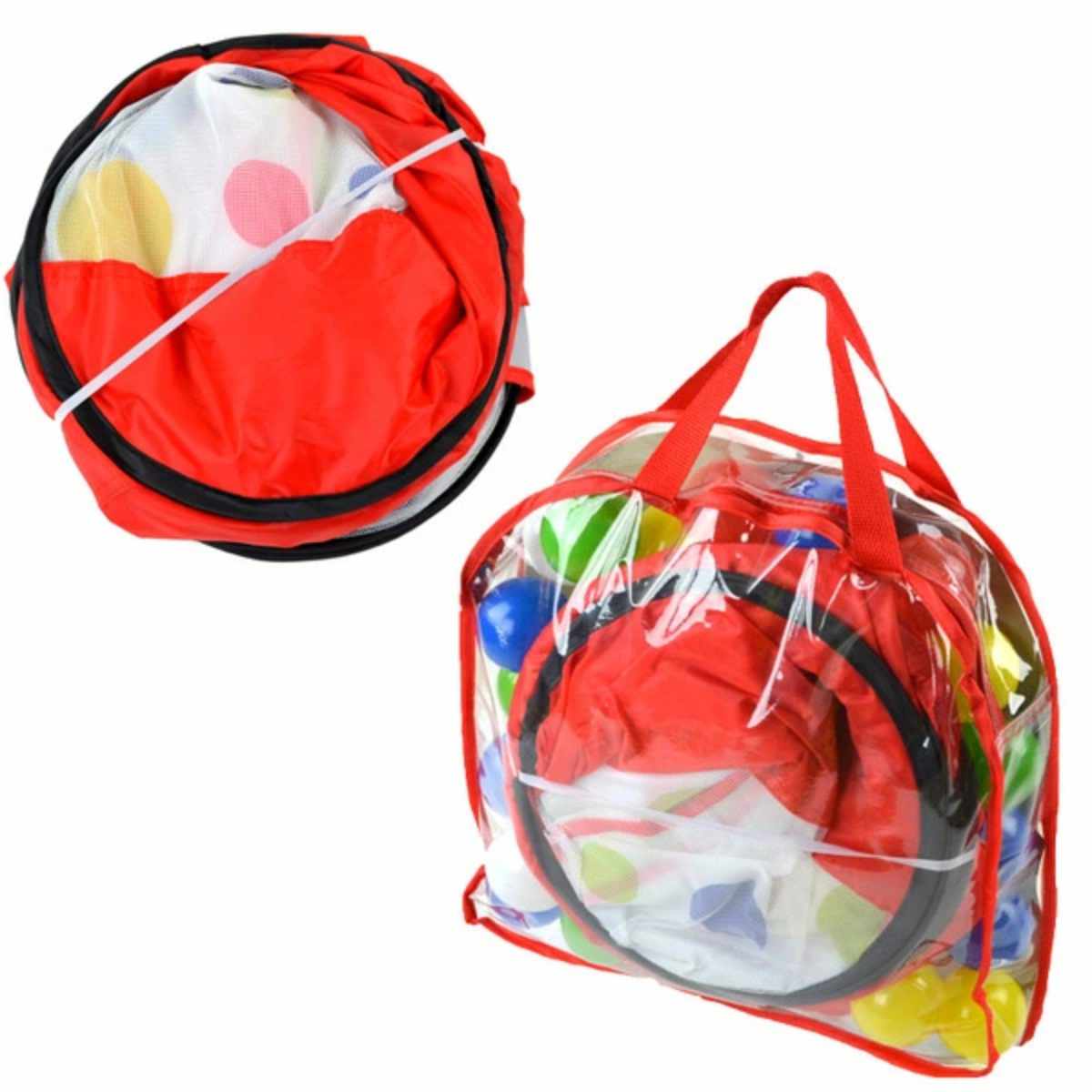 テントは折りたたむと直径約35cmのコンパクトサイズになります。ジッパー付きの収納バッグが付属しているため、遊ばないときはテントとボールをまとめてすっきり収納できます。持ち手付きなので、持ち運びにも便利です。