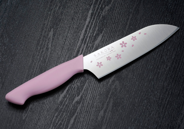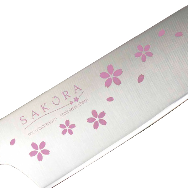 ●新生活にも花を添える、可愛らしい桜柄の三徳包丁です。
