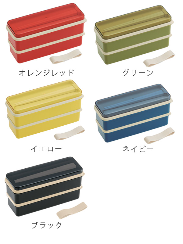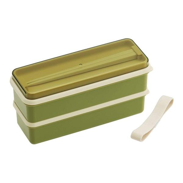 お弁当箱 2段 630ml シリコン製シールブタ ランチボックス レトロフレンチカラー ( 弁当箱 食洗機対応 レンジ対応 シンプル ベルト付 スリムスクエア スリム型弁当箱 ) 【 グリーン 】