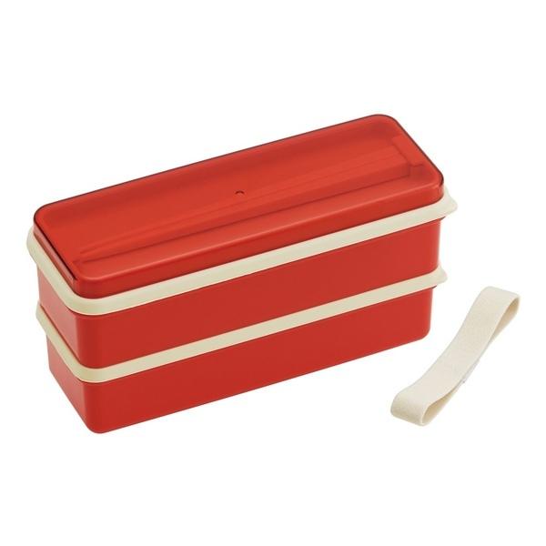お弁当箱 2段 630ml シリコン製シールブタ ランチボックス レトロフレンチカラー ( 弁当箱 食洗機対応 レンジ対応 シンプル ベルト付 スリムスクエア スリム型弁当箱 ) 【 オレンジレッド 】
