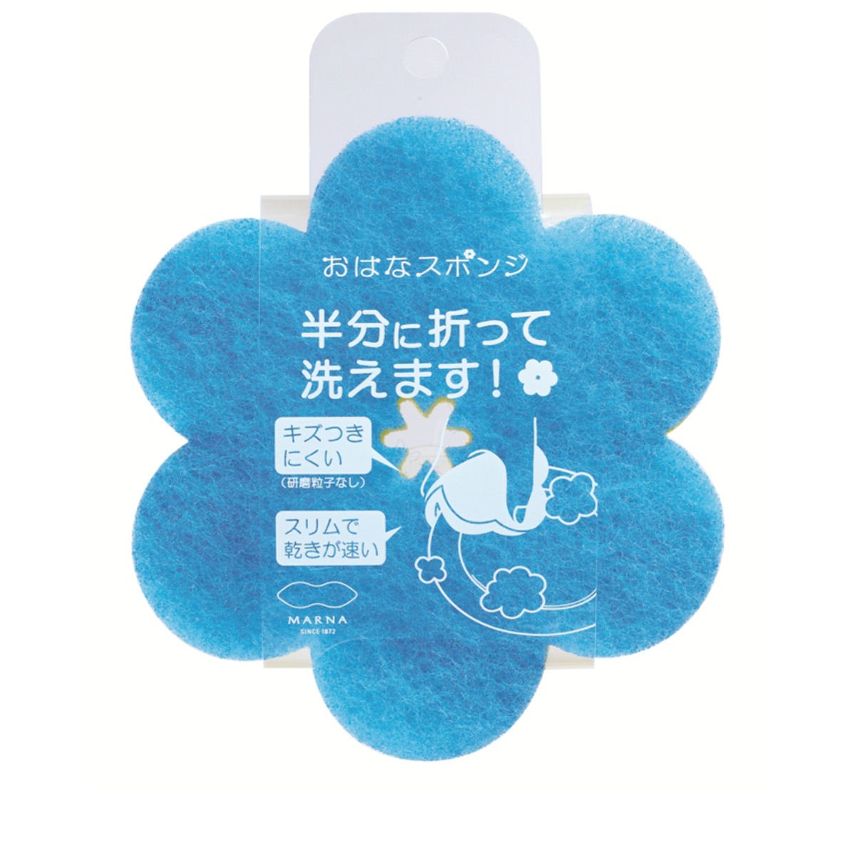 marna マーナ おはなスポンジ K364 ( キッチンスポンジ 食器用スポンジ 台所用スポンジ キッチン清掃 キッチンクリーナー キッチン クリーナー キッチン用品 掃除用品 台所 水回り シンク シンク掃除 スポンジ たわし タワシ ) 【ブルー】