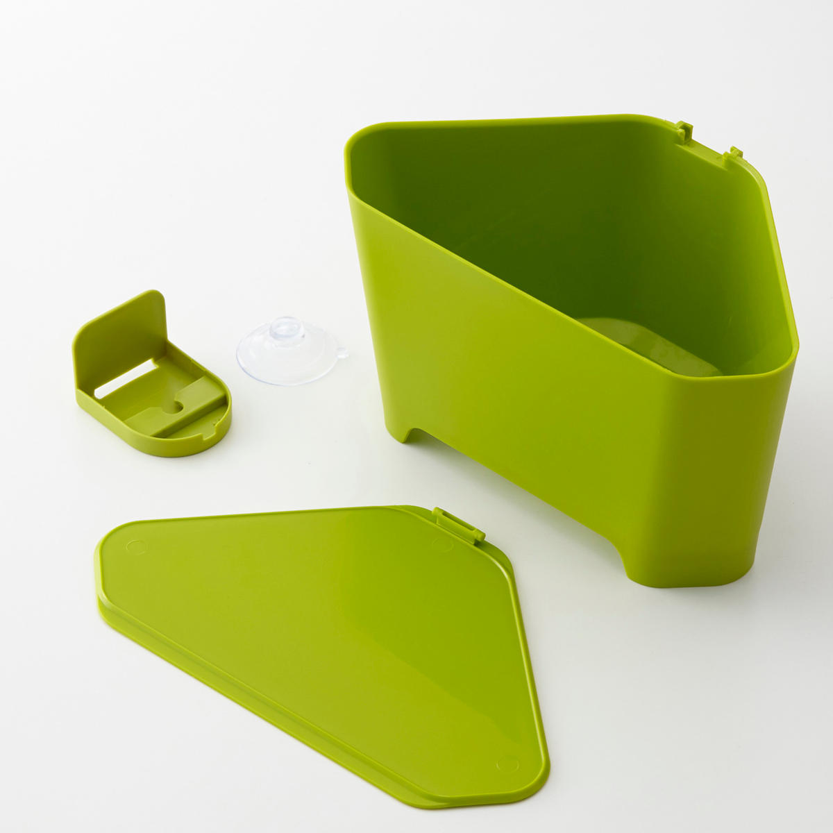 シンクの角に吸盤で簡単に設置できます。浮かせて置くから、ぬめらず衛生的です。