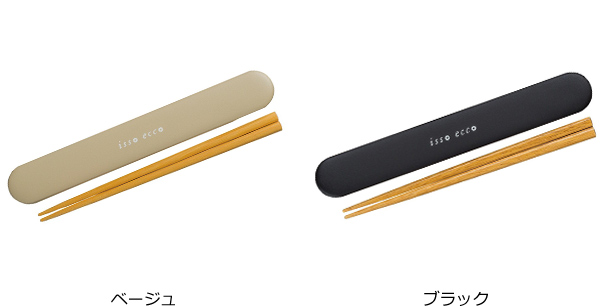 箸&箸箱セット スライド式 日本製 isso ecco イッソ・エッコ 18cm ( 木製箸 お弁当用 弁当用箸 ケース付 ランチグッズ おはし ) 【 ブラック 】