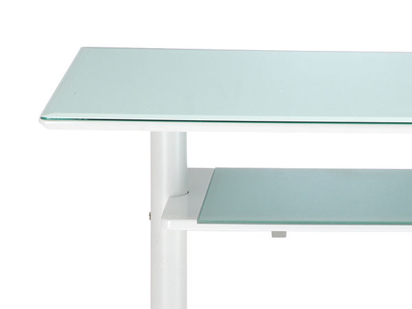 | 材質 | 天板:6mm厚強化ガラス(飛散防止フィルム加工) 棚板:5mm厚強化ガラス(飛散防止フィルム加工) 天板下、棚板下:中質繊維板(MDF) 脚:スチール(粉体塗装) |