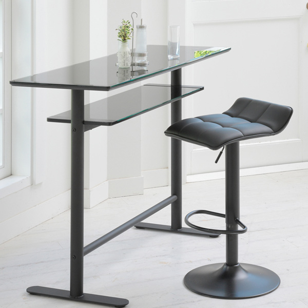 窓から差し込む日差しや照明のライトに照らされ、美しく輝くカウンターテーブルです。天板のガラスと輝きとフレームのマットな質感のコントラストがモダンな印象を与えます。奥行きが約45cmとスリムなので、リビングや書斎など、コンパクトなスペースでも便利にお使いいただけます。