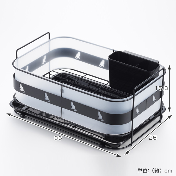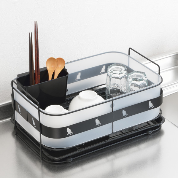 水切りかご クロネコキッチン カトラリーポケット付き スチール製 ( 水切りバスケット 水きり 水切り 水切りカゴ 水切りラック ディッシュラック 黒猫 ねこ ネコ )