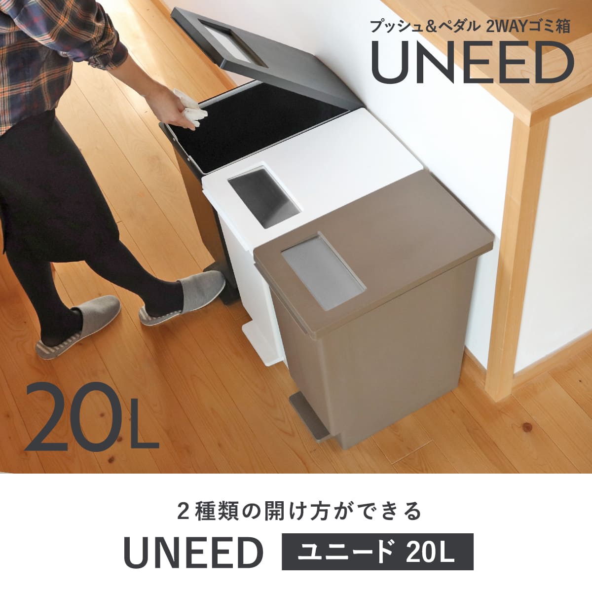 ゴミ箱 20L ユニード プッシュ&ペダル ( 20リットル ふた付き 分別 キッチン ダストボックス スリム 分別ゴミ箱 棚下 カウンター下 縦型 角型 ペダルペール 蓋付き シンプル おしゃれ 小窓 プラスチック ) 【チャコールブラック】