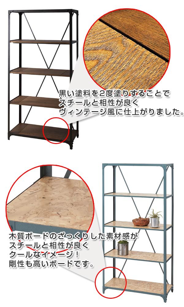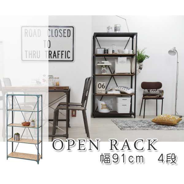 オープンラック 幅91cm 4段 スチールフレーム ヴィンテージ ( ラック 収納棚 ディスプレイラック スチール レトロ シェルフ ディスプレイ収納 OSB フリーラック オープン棚 棚 ) 【ブラック】