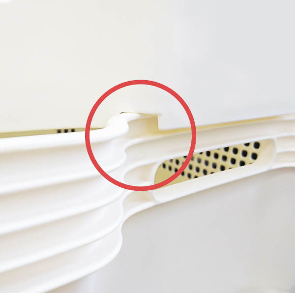底面に溝があるのでスタッキング時にずり落ちる心配がありません