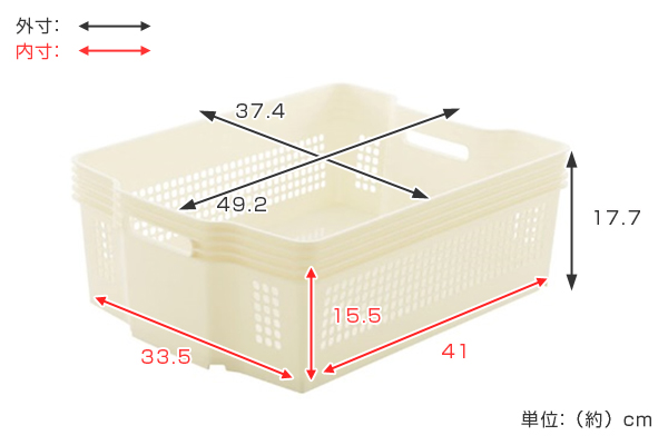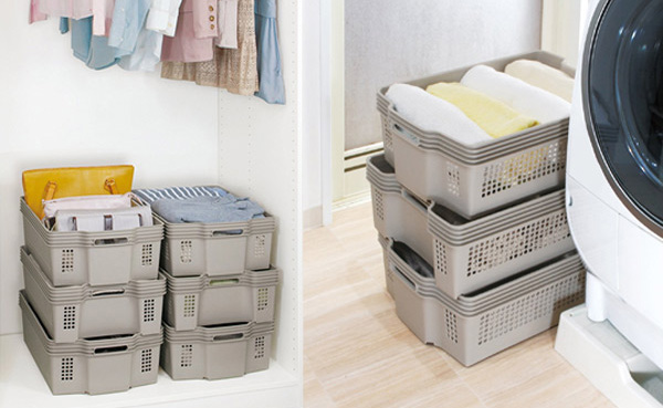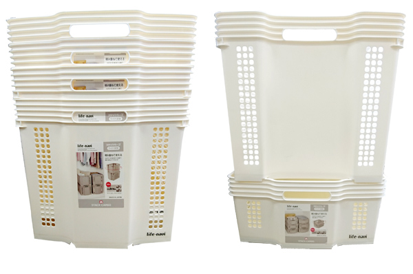 ●向きを180度変えることで、重ねてスタッキングできる浅型ワイド収納カゴです。