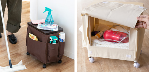 掃除用ワゴンとして掃除用具をまとめて収納し移動しながらお掃除が出来ます。