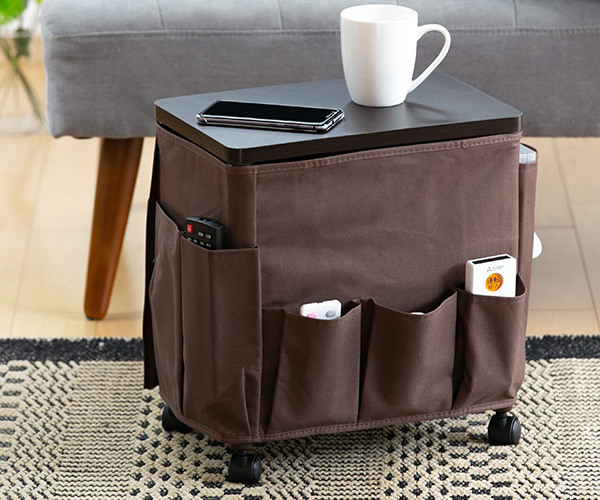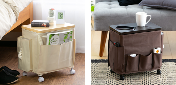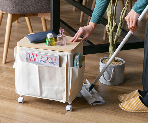 天板付きのワゴンなので、飲み物やメモを取る際にテーブルとしてもお使い頂けます。ソファやベッドサイド、デスク下のサイドテーブルとしても活躍します。