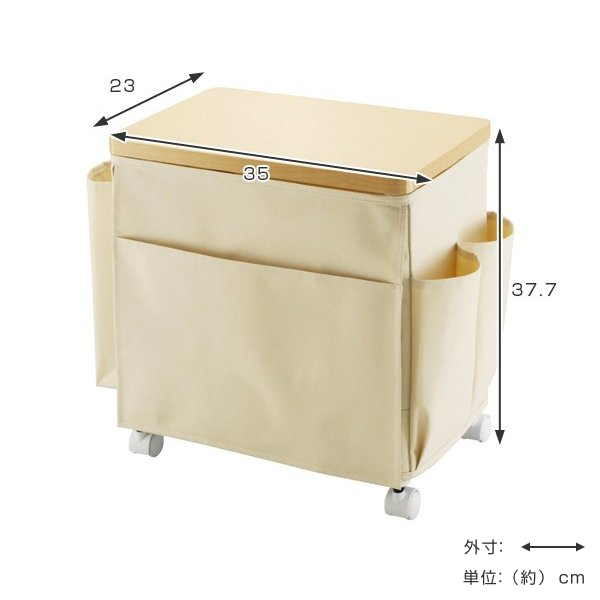 サイドテーブル 高さ37.7cm 収納付き 天板付き キャスター付き サイドワゴン ( テーブル ソファサイド ベッドサイド ミニテーブル ソファテーブル 日本製 デスク下 ポケット付き マガジンラック ナイトテーブル 収納 大容量 A4 ) 【ホワイト】