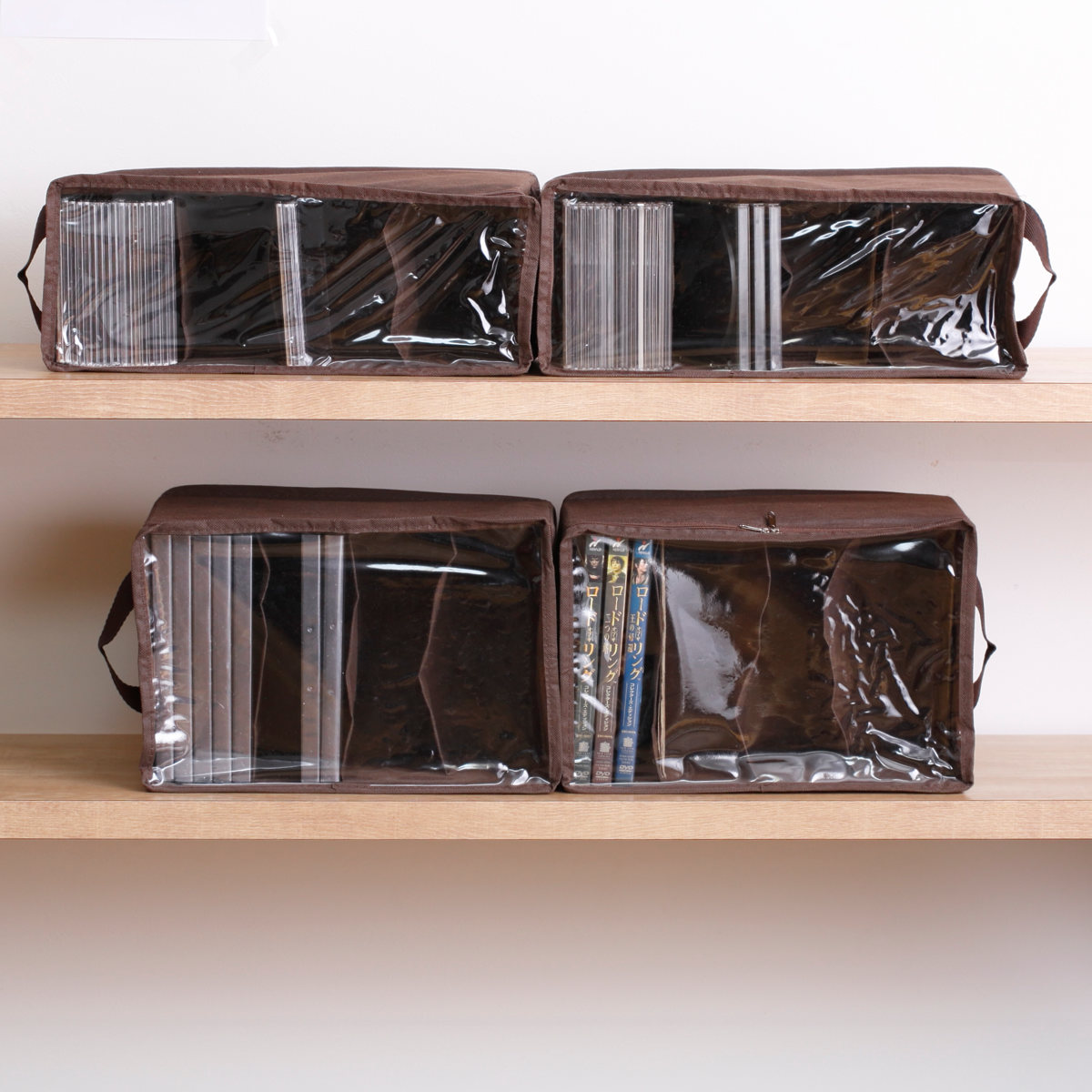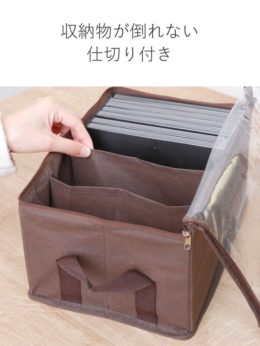 DVDをケースごとすっきり収納できる、仕切り付きの不織布ボックスです。通気性の良い軽量素材を使用し、扱いやすく普段使いにもぴったり。コンパクトなサイズ感で、ベッド下や棚上などのデッドスペース活用にもおすすめです。