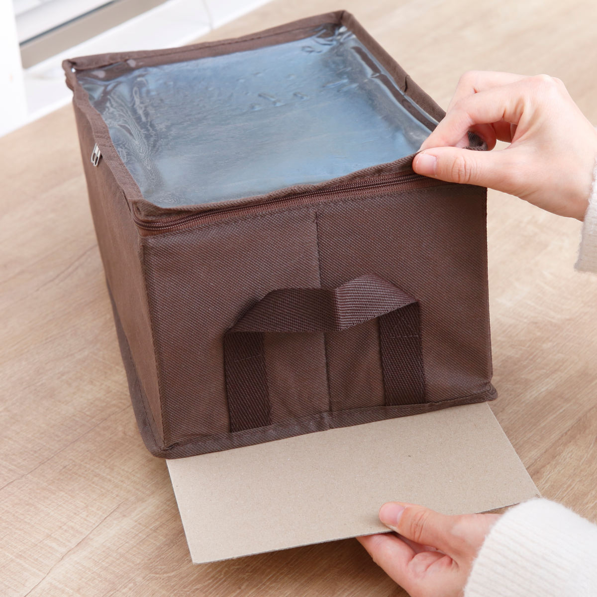 厚紙の底板1枚が付属。底面ポケットに差し込むことでボックスが補強され、型崩れしにくく安定感がアップ。しっかり丈夫なつくりで、長く快適にお使いいただけます。