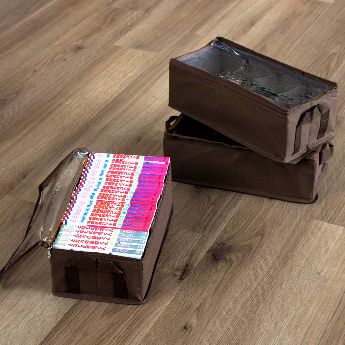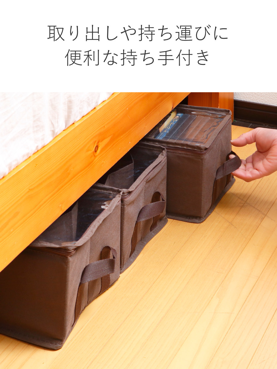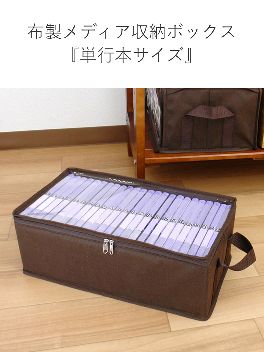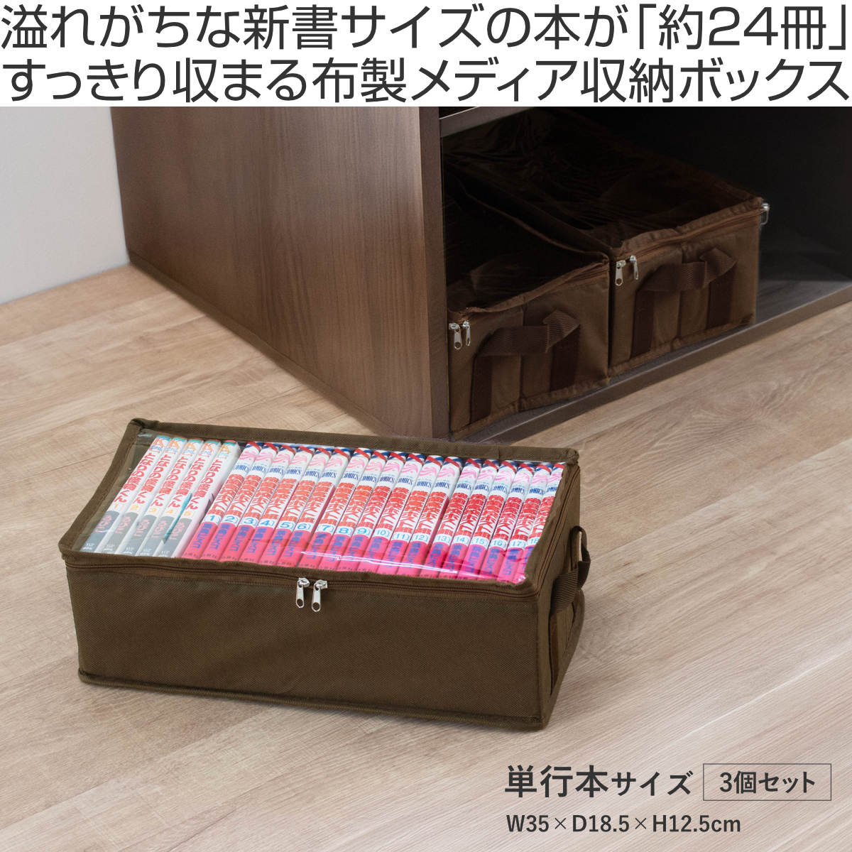 収納ボックス 新書サイズ 幅35×奥行18.5×高さ12.5cm メディア収納 布製 3個セット ( 収納ケース 収納 コミック収納 ゲームソフト収納 仕切り 底板 保管 透明窓付き 布 不織布 ファブリック 新書 コミック 単行本 ゲームソフト )