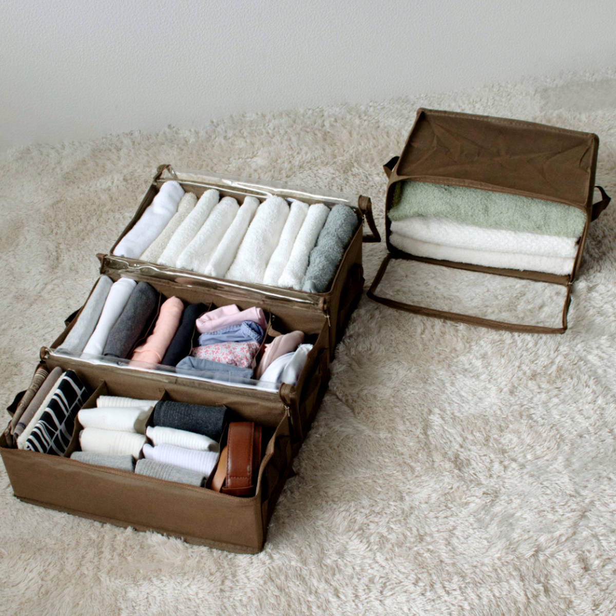 メディア収納はもちろん、衣類の小分け収納にも活躍します。Tシャツや下着・肌着の整理、靴下・ベルト・ハンカチなどのファッション小物の仕分けにもおすすめ。フタ付きでホコリが入りにくく、透明窓は衣替えや季節の整理にも便利です。