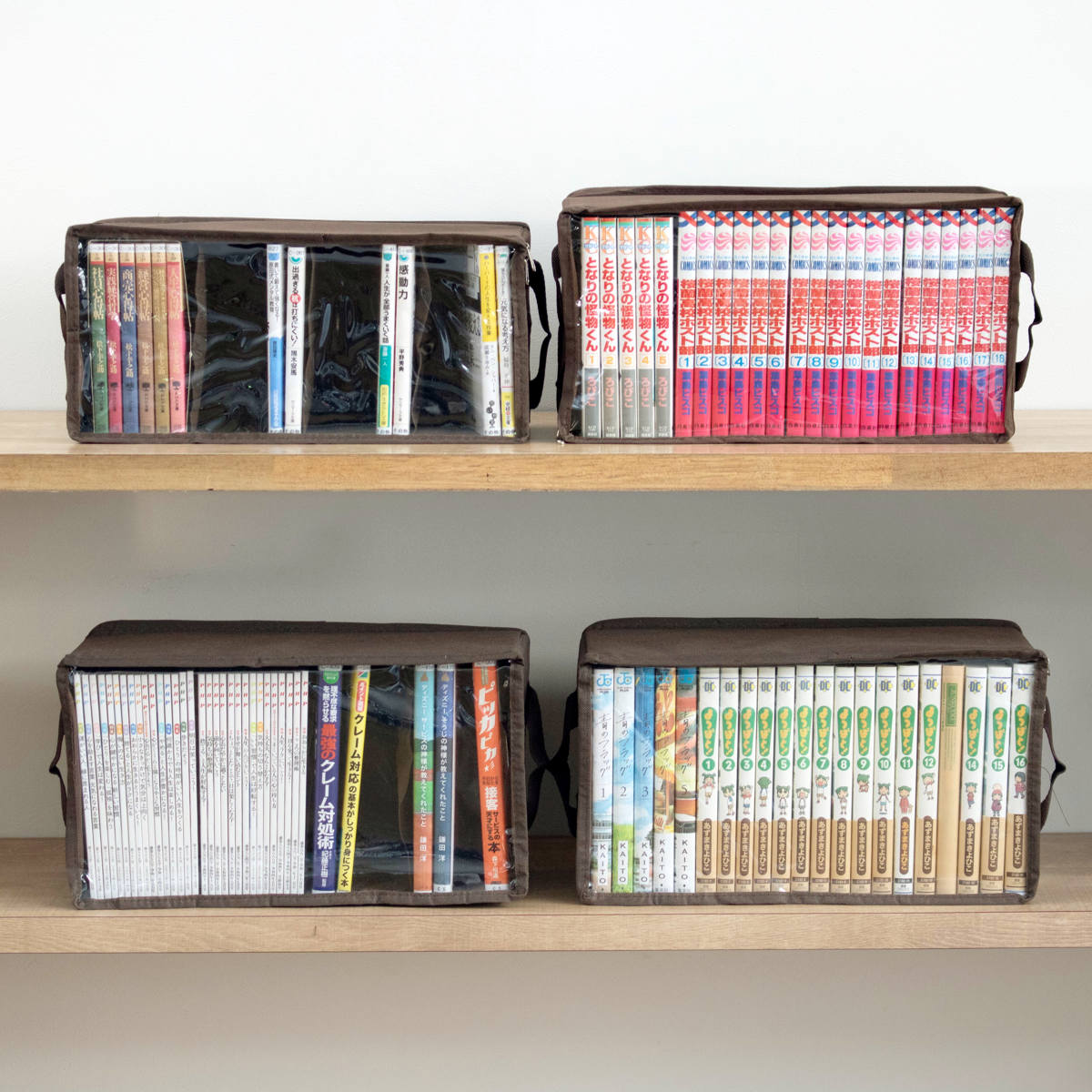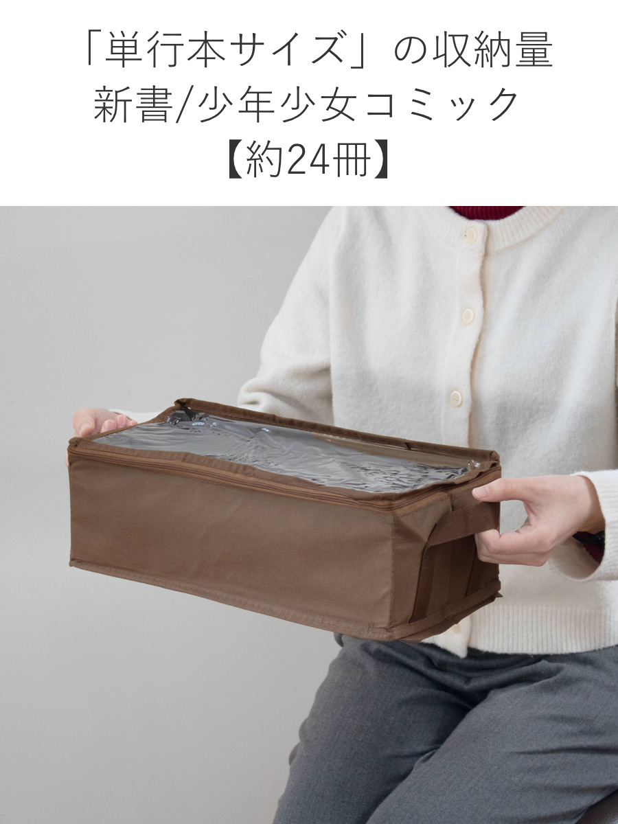 新書サイズの少年少女コミックをすっきり収納できる、仕切り付きの不織布ボックスです。通気性の良い軽量素材を使用し、扱いやすく普段使いにもぴったり。コンパクトなサイズ感で、ベッド下や棚上などのデッドスペース活用にもおすすめです。
