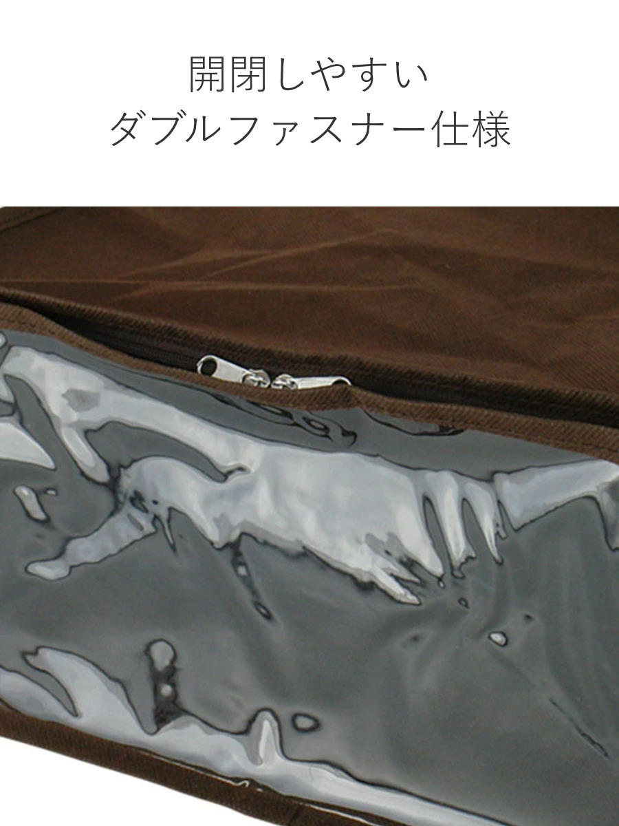 開け閉めしやすいダブルファスナー設計。フタを大きく開けられるので、収納物の出し入れもスムーズです。