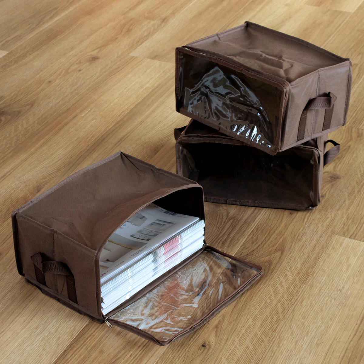 収納ボックス 新聞紙・雑誌サイズ 幅31×奥行24.5×高さ15cm メディア収納 布製 3個セット ( 収納ケース 収納 コミック収納 同人誌 B5 雑誌 本 平積み 保管 新聞紙 新聞 ストッカー ノート B5サイズ 布 不織布 ファブリック 透明窓 )