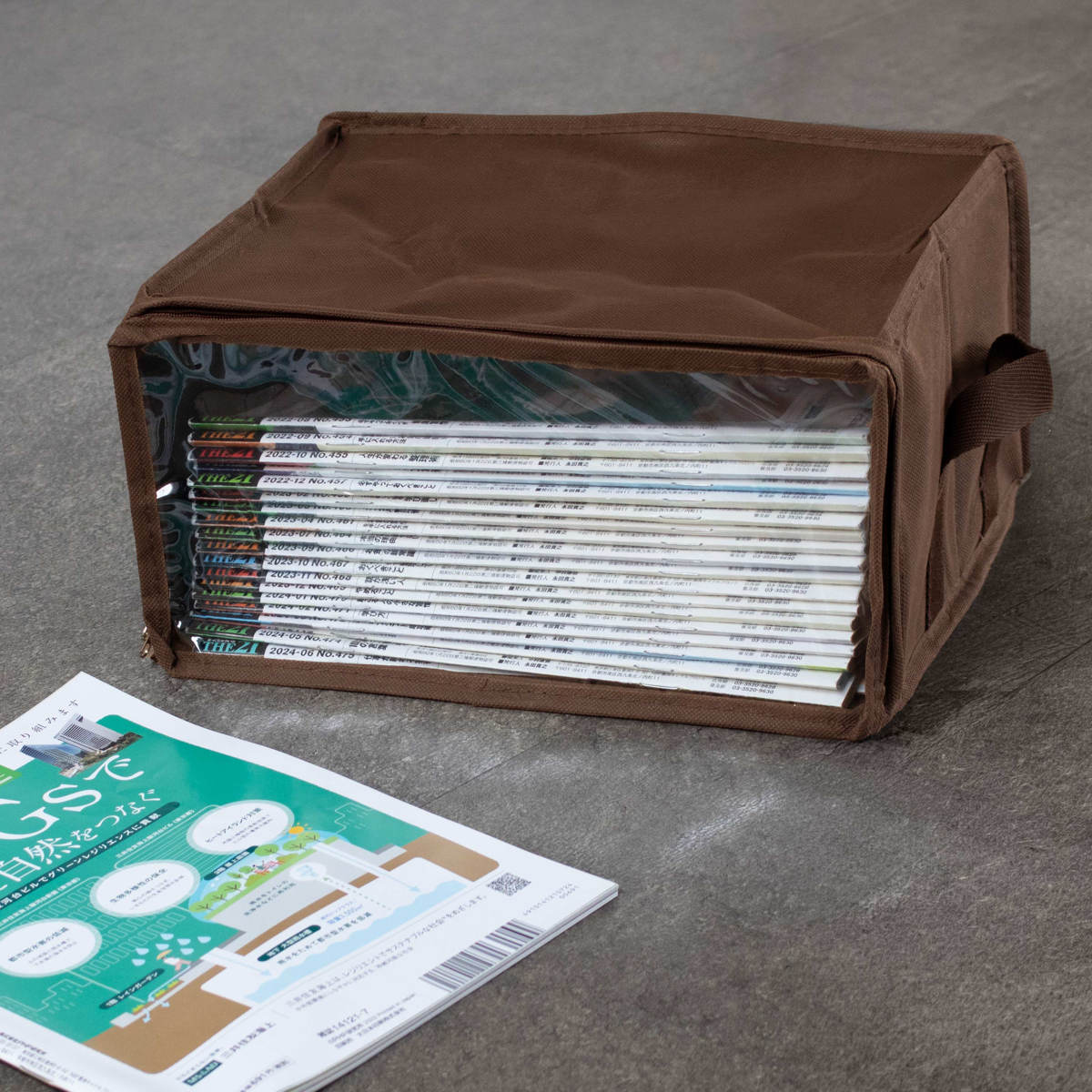 B5サイズの雑誌や新聞紙をすっきり収納できる不織布ボックスです。通気性の良い軽量素材を使用し、扱いやすく普段使いにもぴったり。コンパクトなサイズ感で、ベッド下や棚上などのデッドスペース活用にもおすすめです。