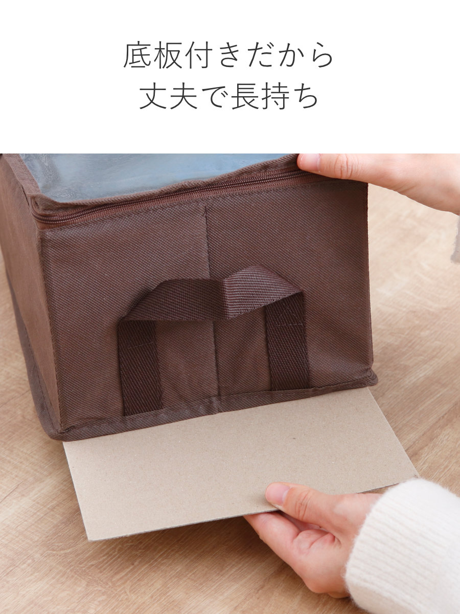 厚紙の底板1枚が付属。底面ポケットに差し込むことでボックスが補強され、型崩れしにくく安定感がアップ。しっかり丈夫なつくりで、長く快適にお使いいただけます。