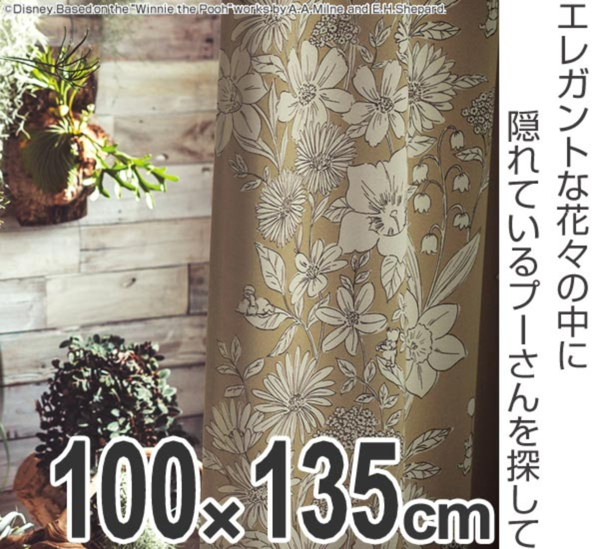 カーテン 遮光カーテン スミノエ くまのプーさん パルテール 100×135cm ベージュ ( ディズニー プーさん ドレープカーテン Disney キャラクター 遮光2級 洗える ウォッシャブル 形状記憶 国産 柄 花柄 既製 幅100 丈135 ) 【ベージュ】