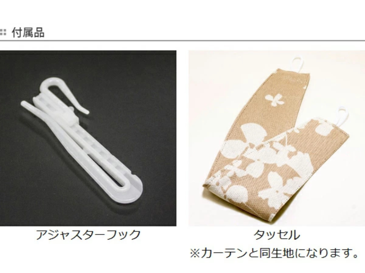 アジャスターフックとタッセルが付属しております。