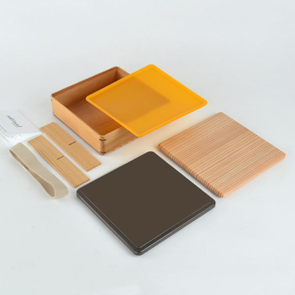 | 材質 | 本体、木製ブタ、仕切り:木(高知県産土佐古代杉) 中ブタ:SEBS樹脂 ゴムバンド:レーヨン・ポリエステル・ラバー 保冷ブタ:ABS樹脂 表面の塗装:ウレタン塗装 |