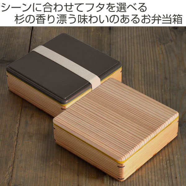 保冷剤一体型のフタと木製ブタの2種類のフタがセットになっています。お客様のおもてなしに使う時は木製のフタを、ピクニックなど持ち歩くときにはお弁当をひんやり保てる保冷ブタを。日々選べる楽しさがある、国産杉で作られた大人な雰囲気のお弁当箱です。
