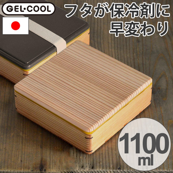 お弁当箱 ジェルクール ムード mWood お重 1段 ブラウン 1100ml 保冷剤一体型 木製 土佐古代杉 ( 天然木 日本製 ランチボックス 重箱 国産 仕切付き バンド付 一段弁当箱 保冷蓋 保冷剤付き GEL-COOL )