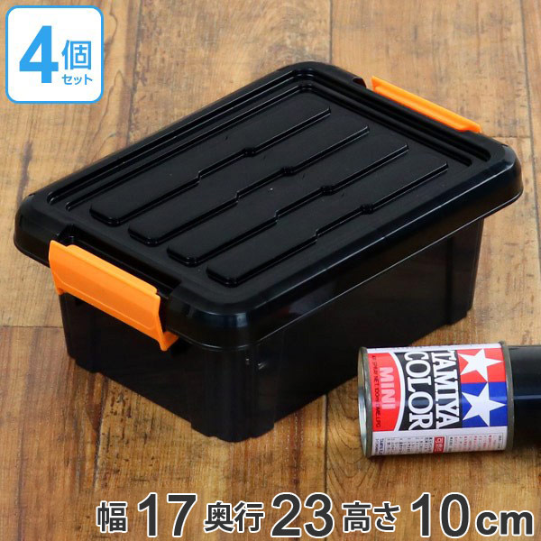 収納ボックス タフコン TCー23-10 幅17×奥行23×高さ10cm 頑丈箱 収納ケース フタ付き 4個セット ( 収納 ボックス 工具箱 ケース 頑丈 丈夫 BOX TCー23-10 スタッキング 積み重ね ふた付き ふた 蓋 フタ 付き プラスチック 日本製 )