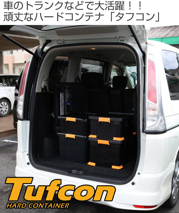 車のトランクやガレージなどで使用できる頑丈箱「タフコン」「タフコン」はとても頑丈で日用品や工具、アウトドア用品などを収納し車のトランクに入れたり、ガレージに置いたりと様々な使い方が出来ます。汚れが目立ちにくいシンプルな黒い色は、飽きが来ず長くご愛用いただけます。