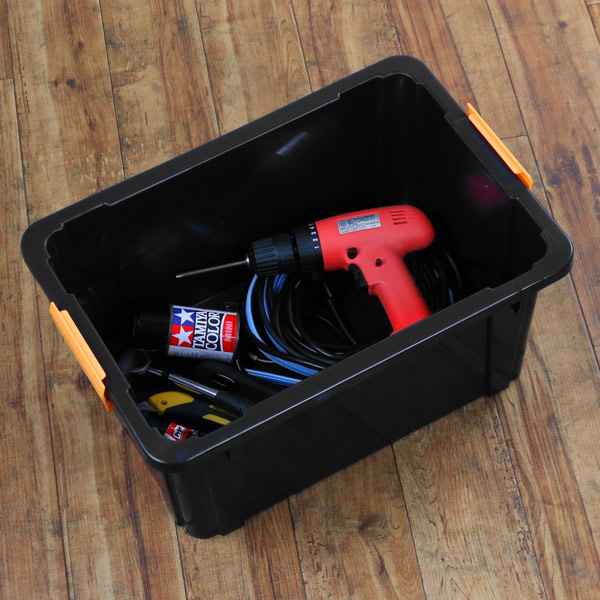 TC-47-23は工具やガーデニング用品の収納にタフコンTC-47-23は、電動ドライバーなどの工具やガーデニング用品など様々なものを収納してご使用いただけます。黒い色のタフコンは、中身の色を隠してくれるので何を入れてもすっきりします。