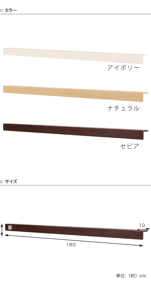壁掛け 収納 長押レール 幅180cm 木目調 壁面収納 ( 壁面 収納 ディスプレイ 壁 ウォールラック ウォールハンガー ウォールシェルフ 壁掛けラック 壁掛け棚 飾り棚 ディスプレイラック 棚 ラック ) 【 セピア 】