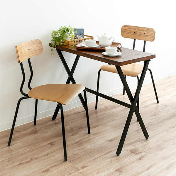 味わい深い木材と店舗什器のようなスチールが使用された、シンプルで美しいデザインが魅力的です。工業製品のような重厚感溢れるスチールが使用された脚部は、細いラインで空間に軽やかなデザイン性をプラスします。