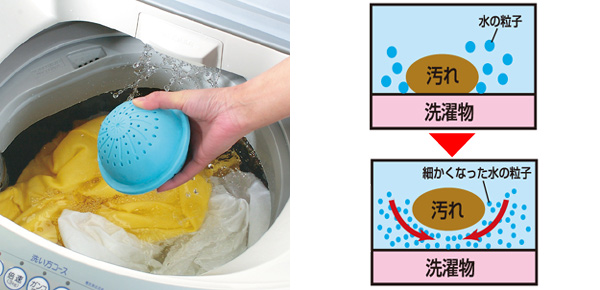 ![]() おすすめポイント ![]() 普段のお洗濯に一緒に入れるだけで洗浄力のある水に! 7種類の特殊セラミックスにより、水道水を洗浄力のある水に変えるので、通常の汚れなら洗剤不要!洗濯時の外圧に耐える新構造の洗濯ボールです。 遠赤外線ボールにより細かくなった水の粒子が活性化し、汚れと洗濯物の間に入り、汚れを落としやすくします。 ※ヨコ型・ななめのドラム式洗濯機には対応していません。 ※乾燥一体型の洗濯機の場合は、乾燥時は取り出してください。 ![]() 効果を実験で証明試験布に汚れを付着させ24時間放置したものを、洗濯処理し汚れの脱落の程度を目視で判断する洗浄力実験を行った結果、ご覧の通り、しっかりと汚れが落ちています。※公的試験結果です。 衣類の色落ち、傷みを抑える脱塩素ボールにより水道水の塩素を還元反応で軽減し、衣類の色落ち、傷みを抑えます。 洗濯槽の汚れを付きにくくする洗濯機の洗濯槽に付着する黒カビ等の雑菌による汚れが、抗菌・コート効果により付きにくくなります。 ![]() | ||