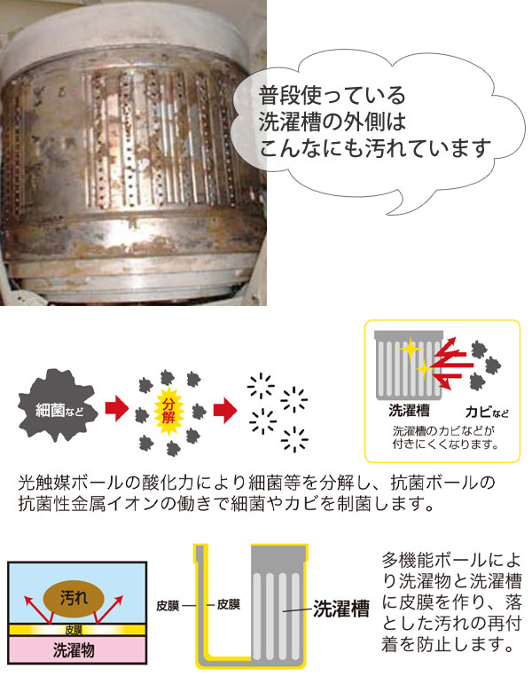 洗濯槽の汚れを付きにくくする