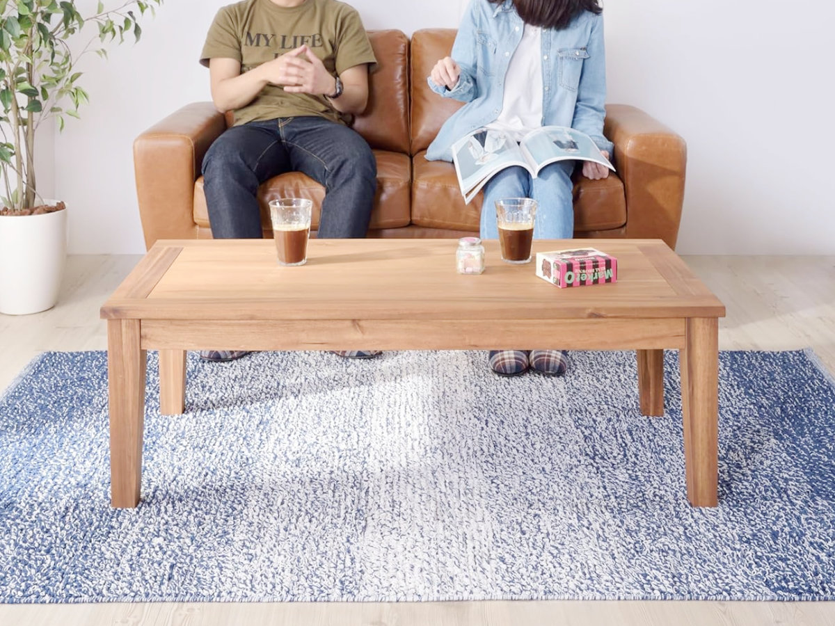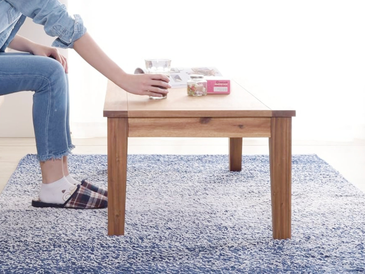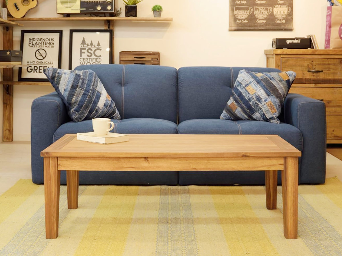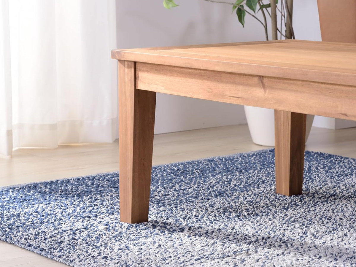 アカシア突板と天然木フレームを使ったローテーブル。美しい木目と自然な風合いが魅力で、オイル仕上げが温かみを添えます。幅110cmの天板は、くつろぎの時間や食事、作業スペースとしても活躍します。ご家族での団らんや来客が多いご家庭におすすめです。