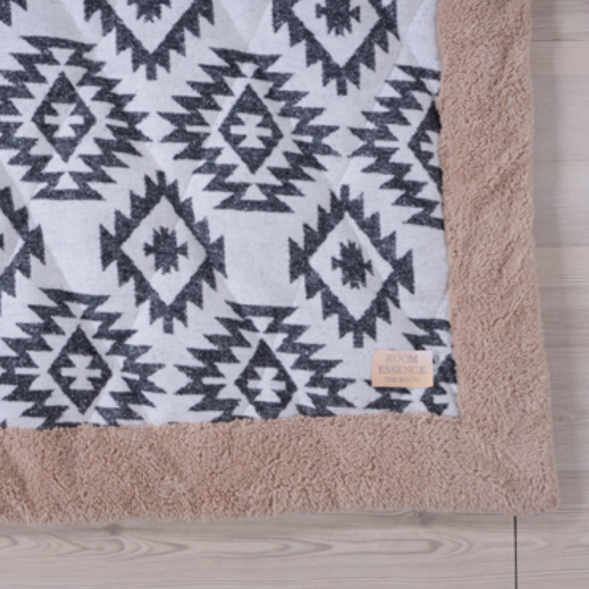 こたつ布団の端はベージュカラーのボアが付いています。温かい印象のボアがキリム柄デザインの良いアクセントになっています。