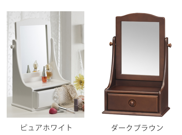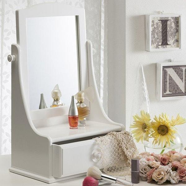 ミニドレッサー サンタフェ 幅31cm ( 卓上ミラー ミラー 鏡 卓上 木製フレーム 四角 シンプル メイクアップ メイク鏡 メイクミラー コンパクト ドレッサー メイク 化粧 お化粧 ) 【 ピュアホワイト 】