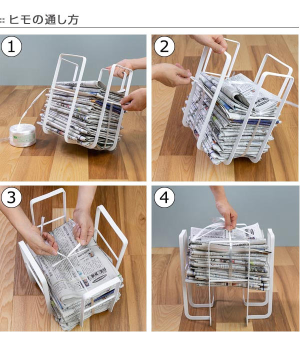 たまった新聞はラックから一旦取り出す必要も無く、ラックと床の隙間から紐を通してそのまま縛れる優れもので、荷造りの手間が一切かかりません。