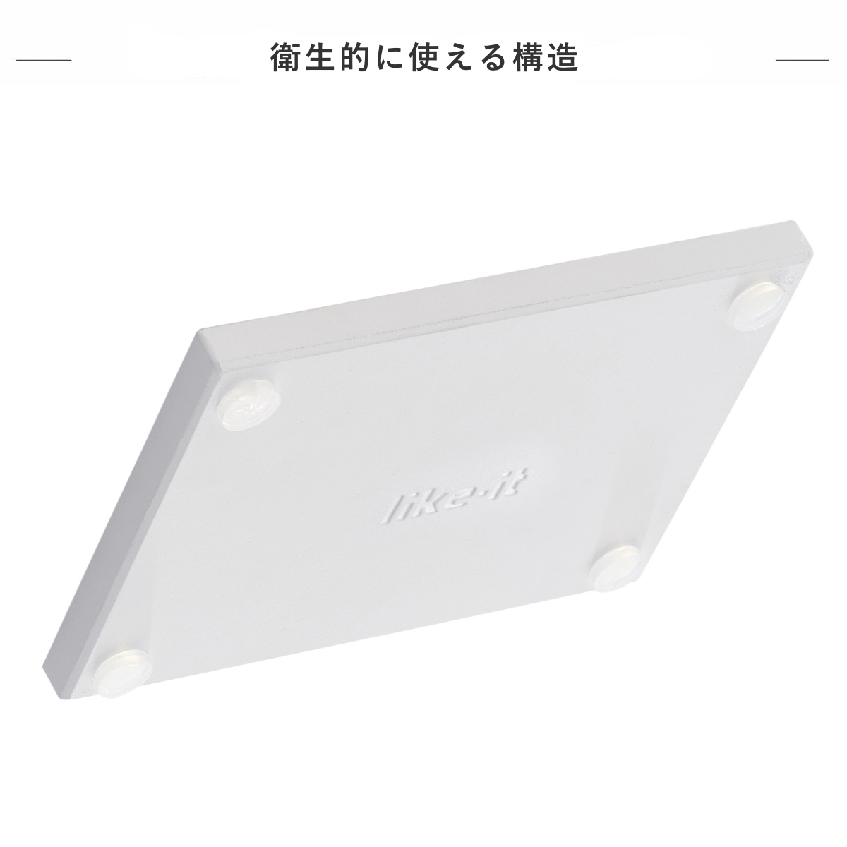 裏面にゴム足があり、設置面との間に隙間ができて通気性がアップ。乾きやすく清潔です。