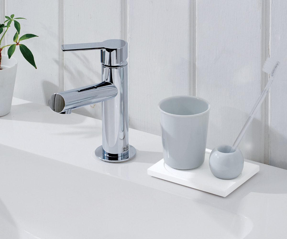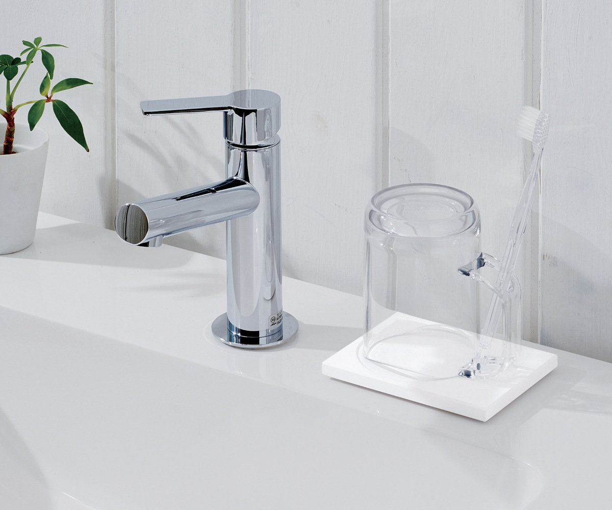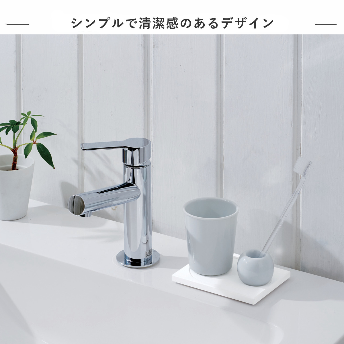 マットな質感で、洗面台やキッチンに馴染むミニマルな見た目です。シンプルながらスタイリッシュです。